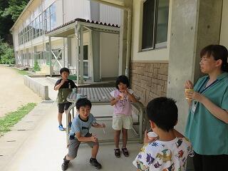 ほかの学校の子ともだんだん慣れてきて、笑顔が出てきます。