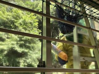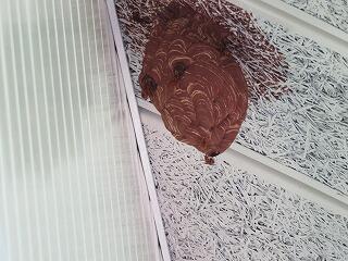 網と殺虫剤を使って格闘すること15分。巣を撤去してくださいました。