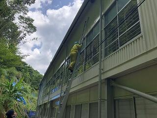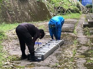 教育委員会の方に相談すると、役場の建設課の方々と一緒にかけつけてくださいました。撤去の始まりです。