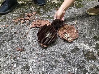 キイロスズメバチの巣でした。子どもたちも安心して活動できます。ありがとうございました。