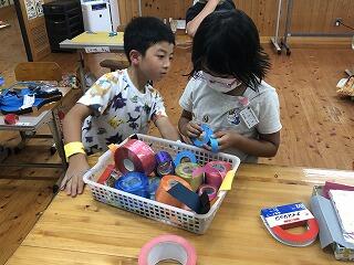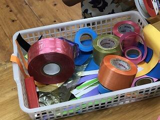 たくさんの種類の紙とテープ。好きな材料を選びます。