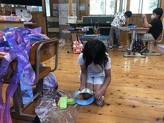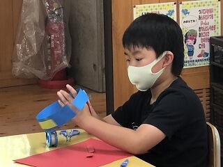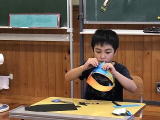 1・2年生が、図工の授業で「ファッションショー」のための衣装を作っていました。