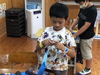 最後に折り紙メダルのプレゼント。これも喜んでくれました。