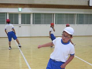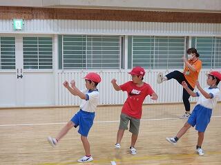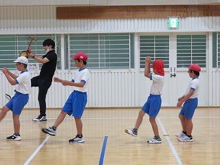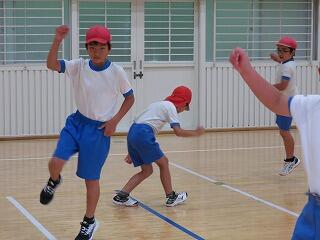 音に合わせた足の運びはかなり複雑ですが、低学年の子たちもがんばって付いていきます。