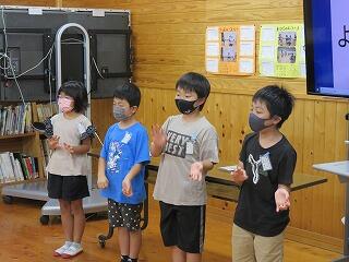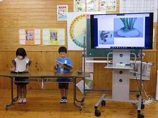 7月のある日、1・2年生が、保育所生を招いて読み聞かせをしました。