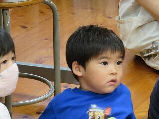 はじめに手遊び歌。「グーチョキパーで グーチョキパーで なに作ろう~ なに作ろう~ 右手はチョキで 左手はグーで かたつむり~ かたつむり~」。小さい子たちもニコニコして一緒にやってくれました。