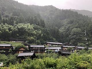 十根川伝建地区と八村杉。伝建地区の高台に登って、ようやく杉のてっぺんを見ることができました。後の写真で出てくる、観光ガイドの高島さんのお話の巧みさもあいまって、気分はすっかり修学旅行です。ぜいたくな時間です。