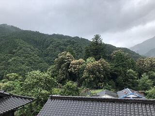 8時くらいまでは山が陽をさえぎってくれるので、とても涼しい大河内小学校の朝。