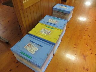 図書館の方が、それぞれの学年に応じた本を選び、学年で1つのコンテナにつめて送ってくださいます。