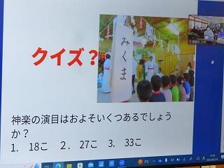 この資料を見てください。これは、保存会の方が神楽を舞っている時の写真です。