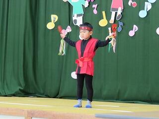 1・2年生の発表。なわとびやけん玉、コマ回しの特技も披露しました。