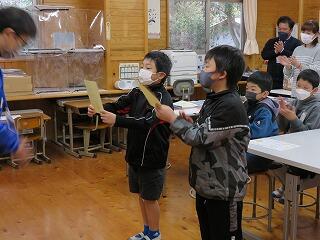 子どもたちが1年間がんばってきたことの表彰をしました。