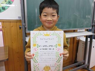 これは「なわとび」の表彰状。あやとびや二重とびをがんばりました。