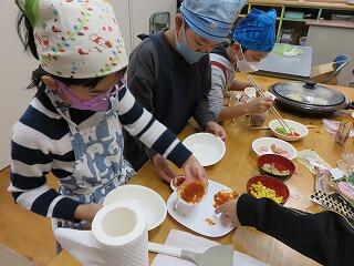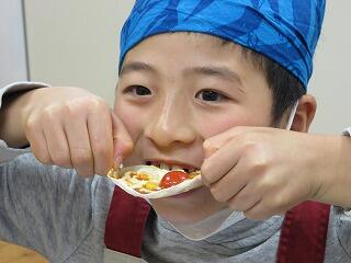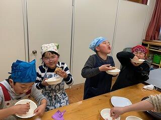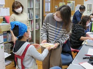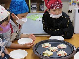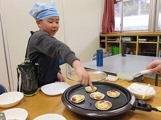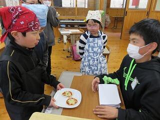 1・2年生がお楽しみ会でピザパーティーをしました。