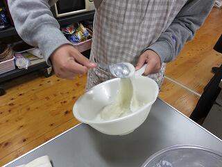 以前、5・6年生がお楽しみパーティーでイチゴ大福に挑戦したのですが、求肥(大福の皮)がカチカチになってしまったのです。