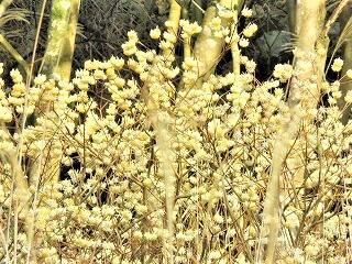 「ミツマタ」だそうです。和紙の原料となる木です。地区のあちこちで咲いています。群生しているところは幻想的な風景です。