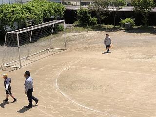 授業終了5分前。6年生が課題のプリントを早く終わらせたので、一緒に運動場を眺めていると…