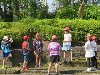 「何をしているのーーー?」と6年生が声をかけると、こちらに気付きました。
