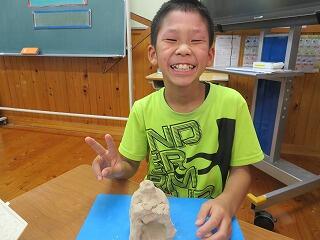 5年生は粘土をこねたり彫刻刀でけずったりして、自分が思いもしないような形が表れてくるのを楽しんでいました。