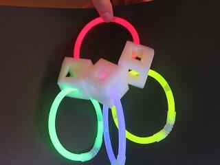 6年生は、メラニンスポンジをカッターナイフで切り、柔らかいプラスチック製の蛍光の棒と組み合わせて楽しんでいました。