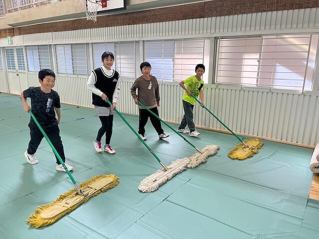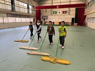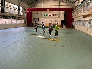 卒業式に備えて体育館にシートをしきました。とても丁寧にモップがけをしてくれた、モップ隊のみなさんでした。ありがとう。
