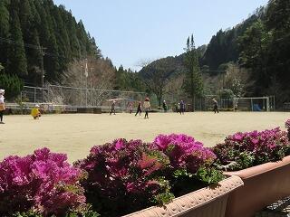 こちらでは、用務の先生が、卒業式で使う花の手入れをしていました。たくさん咲きそろってきました。