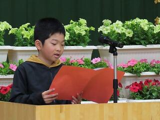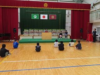 校長先生の話。1年前に校長先生が話したことを、きちんと覚えている子が何人もいました。「命を大切に」というお話しです。自分の命もお友達の命も大切にしてほしい、というお話しでした。