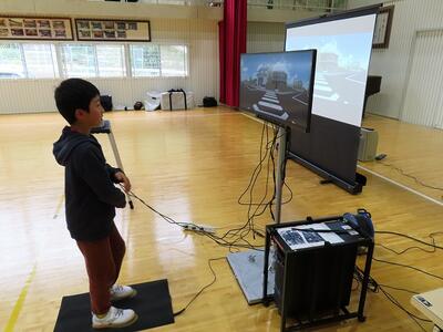 子どもたちはスクリーンに映される道路の左右をしっかりみながら、安全に横断歩道を渡っていました。