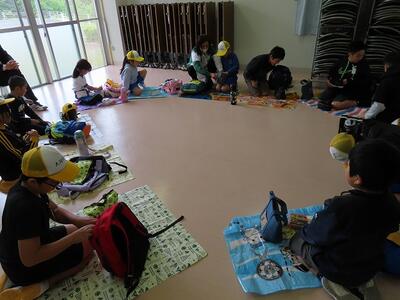 昼食は村の総合運動公園内の体育館を利用させていただきました。