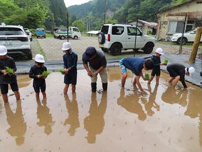 天候が心配されましたが、毎年の恒例行事である田植えといもの苗植えを行いました。
