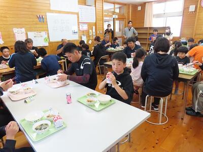 調理員S先生が作られる本校自慢の給食に舌鼓を打っていただきました。