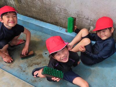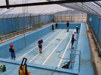 おおにぎわいのプールそうじにトカゲもびっくり(゚∀゚)