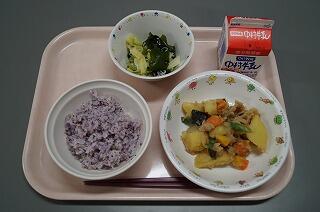 麦ごはん 椎葉煮しめ 菜豆腐 醤油