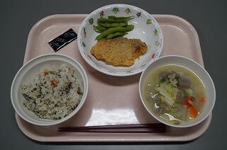 くさぎ菜飯 豚汁 しいらフライ ソース 枝豆