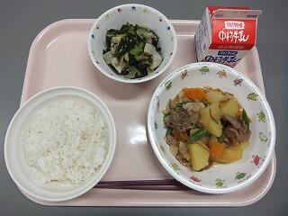 肉じゃがはじゃがいも、にんじん、こんにゃく、豚肉、いんげん