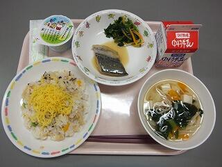 減量わかめごはん 汁ビーフン ごぼうサラダ