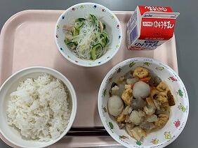 梅菜ごはん 海藻サラダ かぼちゃのミートソース