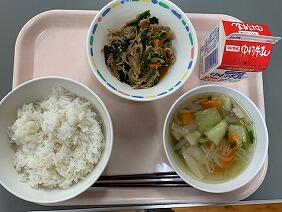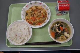 麦ごはん 豚肉のしょうが炒め とうきび汁