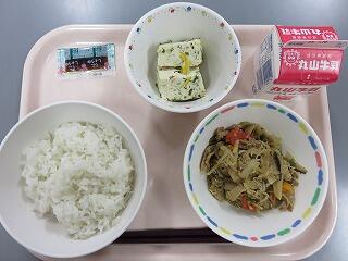 今日は、給食感謝献立でした。明治22年に山形県で始まった無料のお昼ご飯をモチーフに、当時を再現しています。小松菜のたくあん炒めは、ポリポリしていて、たくあんの塩気で小松菜も食べやすかったです。鮭は少し固めで食べ応えがあり、塩味がごはんとよく合います。栄養すいとんは、みそ味でほっこりとあたたかく、すいとんもモチモチしていておいしかったです。毎日おいしい給食が食べられることに感謝です。