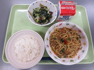 給食前から食欲をそそる豚キムチのいい香りが校内にただよい、