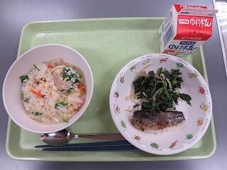 昨日が学校給食記念日ということで、初めて出された給食の献立(おにぎり、焼き魚、漬け物)に似た献立でした。