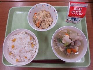 コーンご飯 ・ 豚汁 ・ ミルクおから