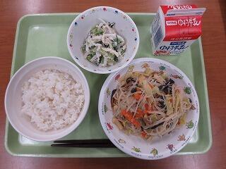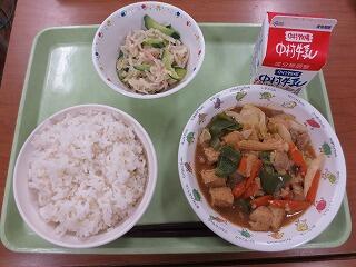 麦ごはん ・ 厚揚げの中華炒め ・ 千切り大根のピリ辛あえ
