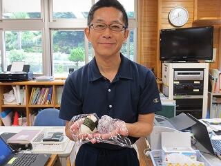 ↓ お手本のおにぎりです。教頭先生が作りました。