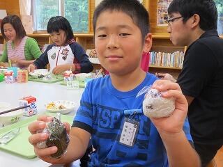 1・2年生は丸のおにぎりを1つ、3年生以上は違う形のおにぎりを2つ作りました。みんな一生懸命、いろいろな工夫をしながら楽しくおにぎり作りをすることができました。
