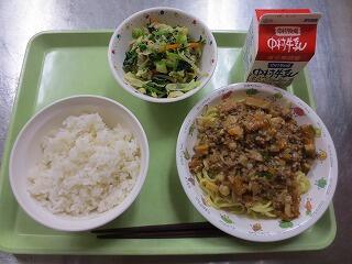 減量麦ごはん ・ ジャージャー麺 ・ ほうれん草のごまあえ