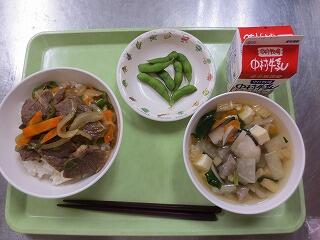 宮崎牛の焼肉丼 ・ すまし汁 ・ 枝豆