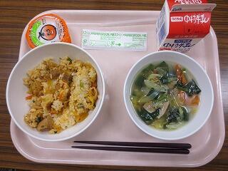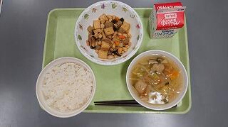 麦ごはん ・ 厚揚げの野菜あんかけ ・ 中華きのこスープ