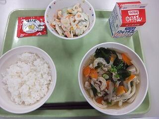 減量麦ごはん わかめうどん れんこんのマヨネーズ和え ふりかけ