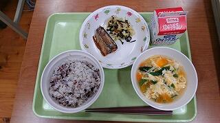 雑穀ごはん かき玉汁 さんまかぼすレモン煮 白菜の昆布和え